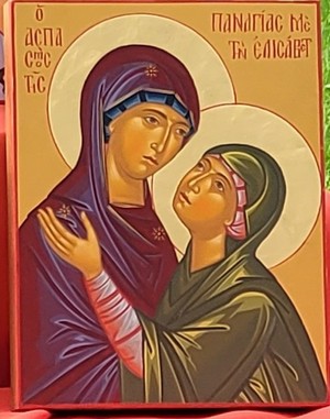 The mystery - the event - of the Visitation is quite a powerful one to pray and reflect on, and there are many icons which tell the story, but this one was written here, just this past summer, and you are invited to look at the faces of the two saints and to behold their joy.'My soul magnifies the Lord' - these words spoken by Our Lady could so easily have been uttered also by Elizabeth, yet although they weren't hers, she certainly lived them with faith. What lesson, with the help of this icon - can contemplation of this particular mystery teach us? I think beauty, joy and wonder.