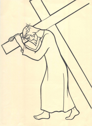 Jesus, was the weight of the terrible Cross on Your wounded shoulder heavier to bear that our sin? Only Your love can tell us, only Your merciful love can bring us to true sorrow for our sin.